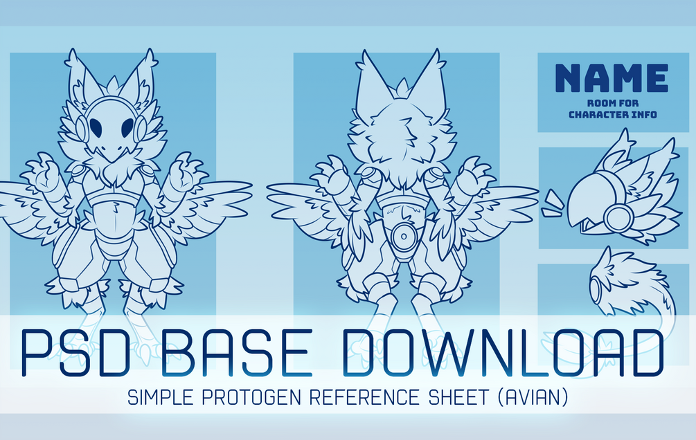 This base set includes the avian variant for the Simple Protogen reference sheet base!